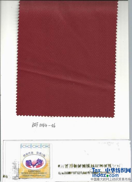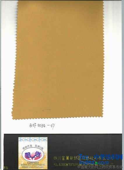 我公司采用阻燃劑單體與聚酯單體共聚生成改性阻燃聚酯切片,再經紡絲、紡紗、織造等工藝生產出磷系永久阻燃滌綸機織或針織織物,其阻燃性能達到國家GB20286-2006“阻燃1級”標準。產品阻燃性永久不丟失,且染色性能良好,燃燒時低煙無毒,屬于不含鹵素的環保型阻燃織物,與普通織物一樣手感柔軟,美觀,有較好的抗靜電性。