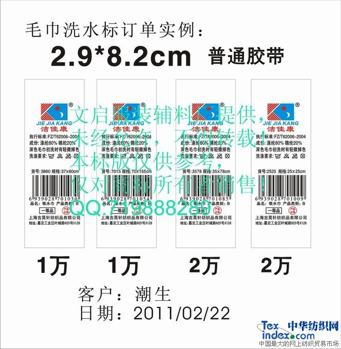 長期供應 毛巾洗水標簽 毛巾標簽 毛巾條碼標 |